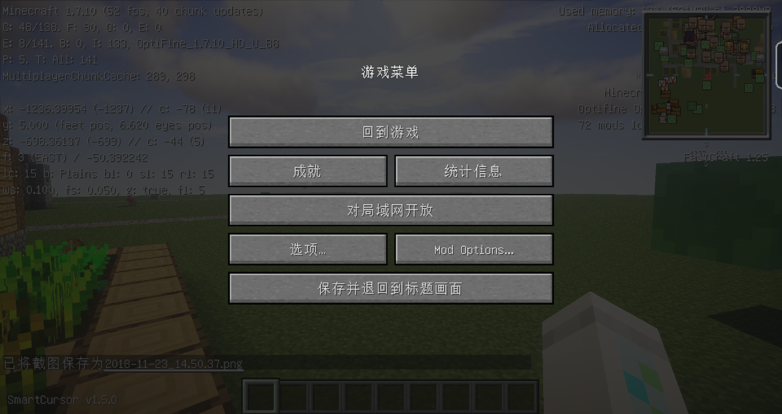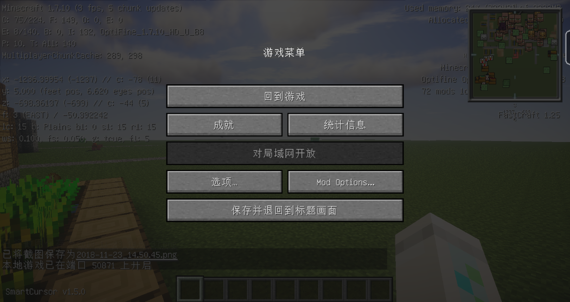 还有已知的是 去掉光影mod,就不会出现这个问题,但是我就是为了光影才特意弄的这个包,不能去掉72个mod加载的时候进游戏有2-3FPS 40多个mod的时候有15FPS左右,forge什么的都是自己用完全纯净端再用安装器安装的
