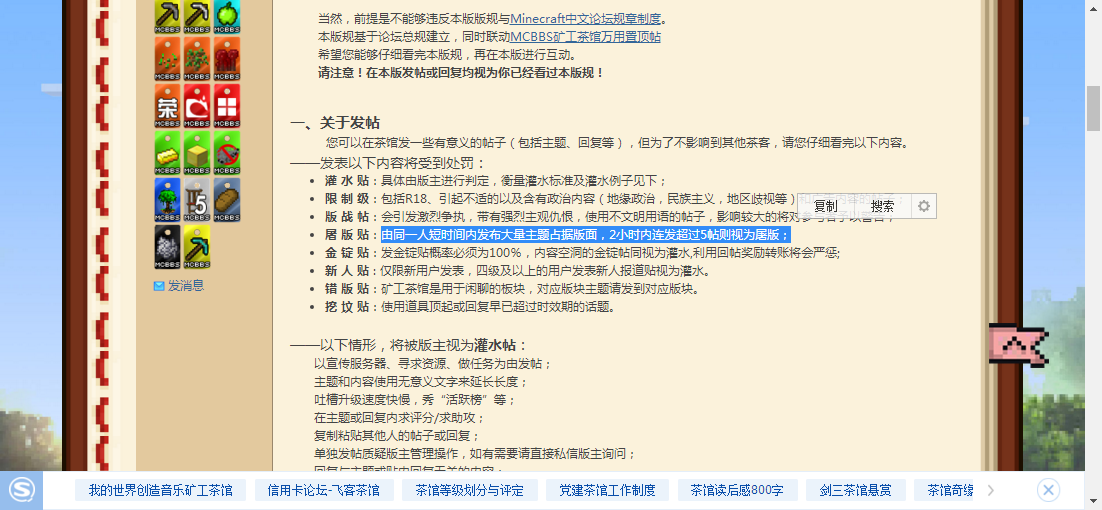 以上所有违规将会被扣除0~2人气、5~20金粒,严重时将会发卡或者扣除贡献!