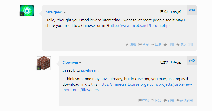 | 由于curse的一些原因,加载的时候会跳转链接,造成访问速度较慢 目前已尽量编辑成跳转后的链接,如有疏漏导致卡慢请尽量指出,希望能谅解! 本mod适用于API:Forge 如果不知道这个API的同学点击此处了解并使用 使用整合包的同学可以经确认后直接安装mod使用 请先确认你的mc版本和API名称,然后选择合适的mod版本下载,不要选错API! |