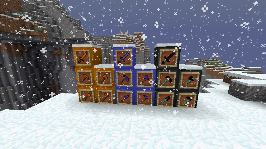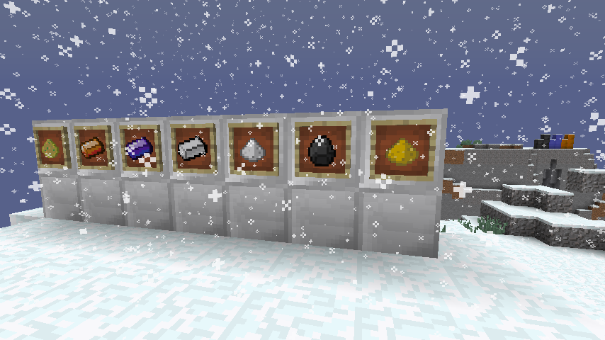| 添加了什么?  上面依次是 青铜块 秘银块 铂金块 盐块 黑钻石块 下面依次是 铜矿石 锡矿石 秘银矿石 铂金矿石 盐矿石 黑钻石矿石 硫磺矿石 (原文翻译) 铜:和锡一起制造青铜。 锡:铜和一起制造青铜。 青铜:铜和锡的结合,比铁差但比石头好,可以在大多时候代替铁锭。 秘银:比钻石差但比铁好,可以在大多时候代替铁锭。 铂金:非常稀有,可以制造铂金皇冠,还有更多非装甲的东西到来。 盐:新资源,用来做食物,只在地表有。目前只能做肉干,计划让盐有更多用处。 黑钻石:非常稀有,比钻石要好(别弄太多),而且要用钻石代替木棒。 硫磺:只在地狱有,和木炭一起制造火药。 合成表: 一些预览: 注意区分铂金和钻石,黑钻石和煤炭。(从左往右)  一些矿脉: 兼容性: 目前来看与Lucraft Core该核心下的铜、锡和青铜兼容 其余暂时未知 |