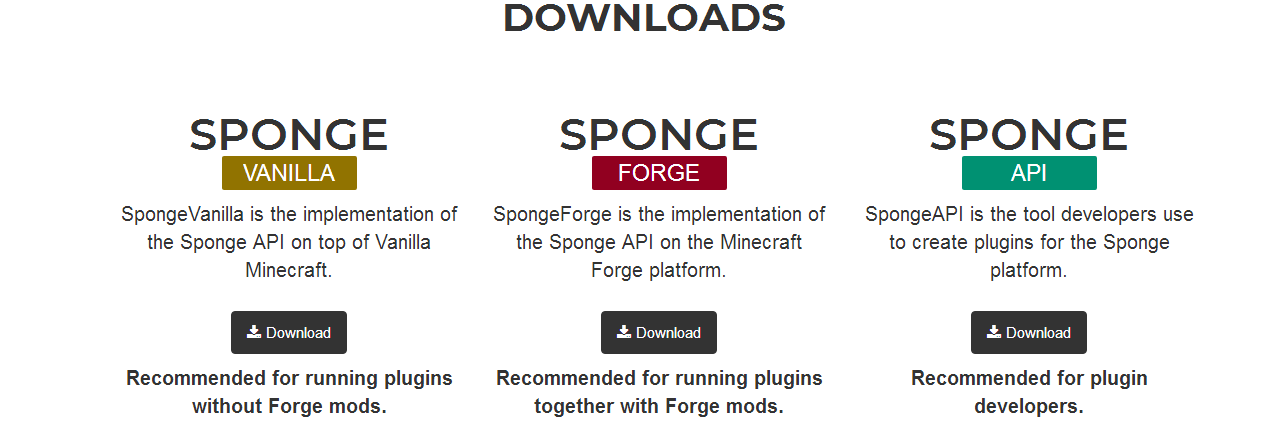 想必很多服主都感到海绵端的小难度了,今天我就来教大家自己搭建一个海绵端的服务端,并分享我的一些心得。首先要去https://www.spongepowered.org/海绵端的官网下载三个东西