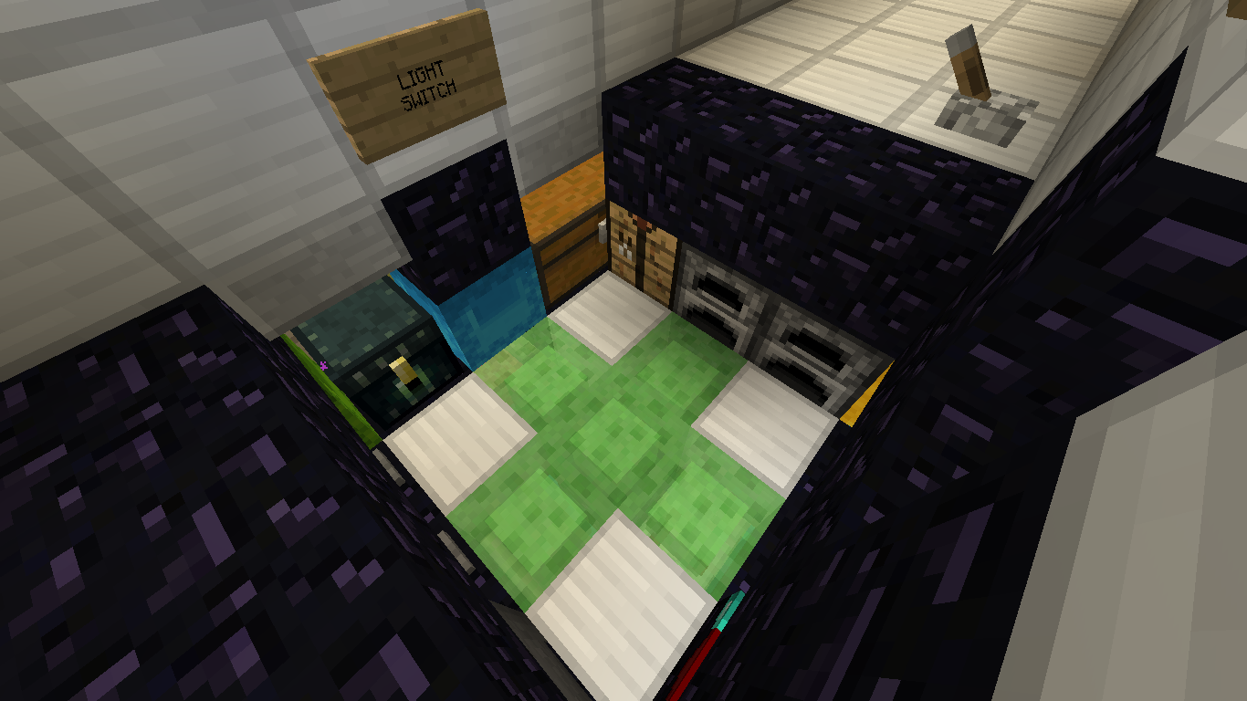 自從第四屆擂台賽之後,論壇好像沒有再舉辦過一個像樣的紅石比賽了。因此,我希望藉著這個蛋糕作品,以 Minecraft 最重要的其中一項元素——紅石電路——來紀念 Minecraft 誕生十週年!這個是一個巧克力蛋糕,上面再加上巧克力忌廉。雖然這個蛋糕表面上平平無奇,但實際上卻是充滿內涵!進入秘密基地的方法十分簡單,蛋糕上面其中一個朱古力忌廉會有一個按鈕,按照附近的告示牌的指示站在正確位置並按下按鈕,便能夠進入秘密基地。
