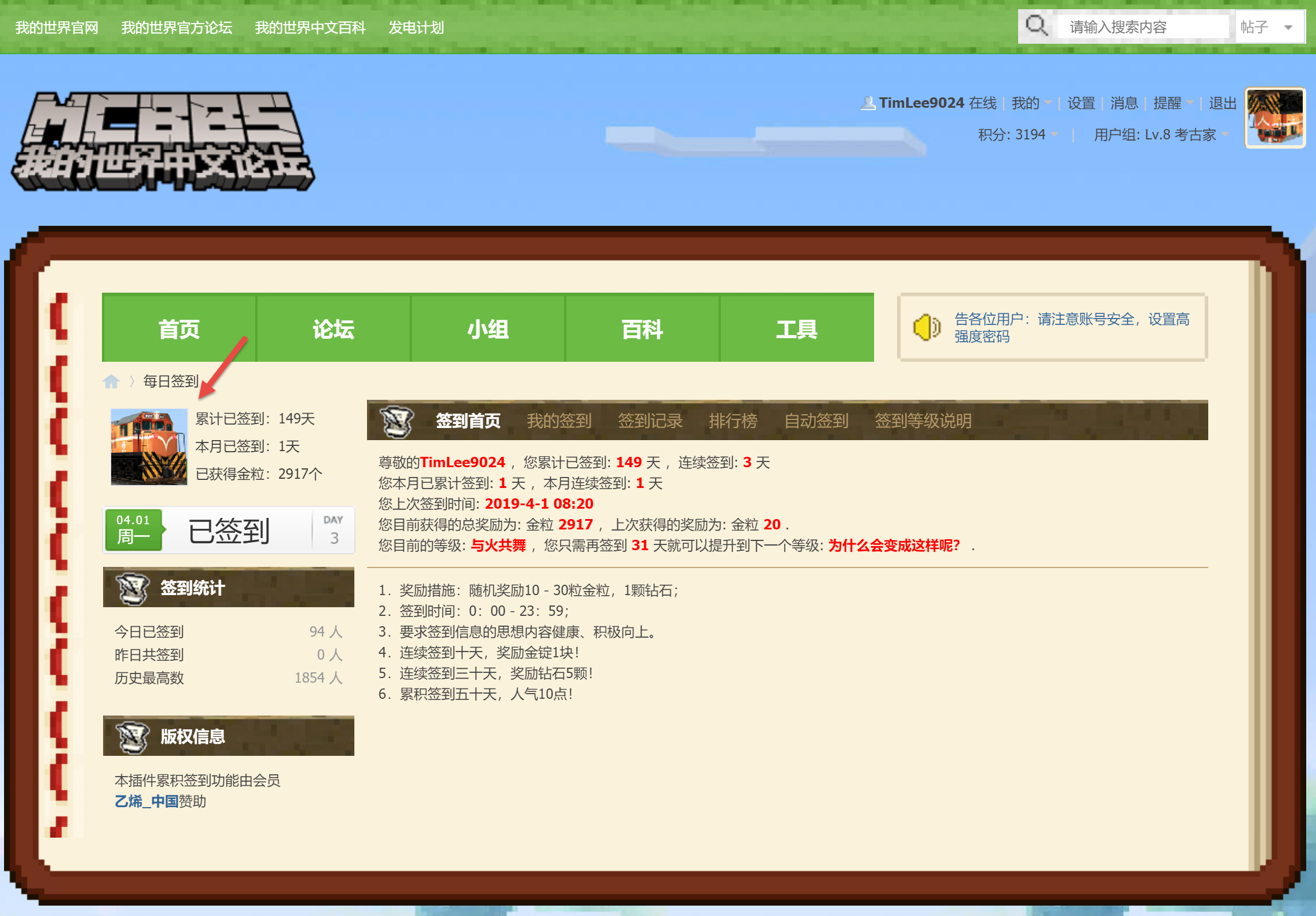 至少Dinnerbone还没有动到每日签到机制,没事儿~~