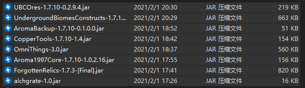 等价交换是事先没有加进去的在外面的文件夹里无中生有也在外面的文件夹里林业是Forestry如果删除林业则需要删除魔法蜜蜂Magic Bees 魔戒 LotR 中土神秘学MiddleEarthThaumaturgy