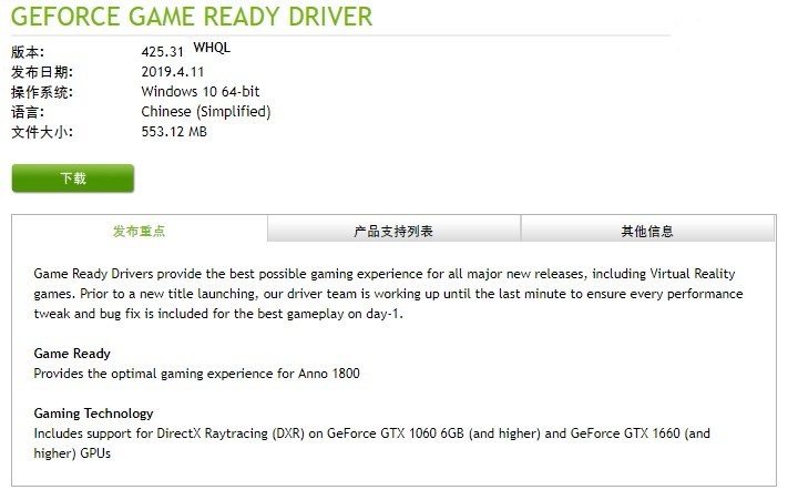 英伟达最新发布了GeForce Game Ready 425.31 WHQL驱动