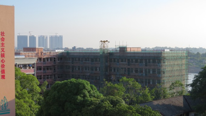 学校拆除了图中35号楼和34号楼,新建了学生宿舍(高二暑假开始拆,到8/29的前几天才建完)