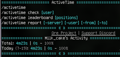 /activetime check [玩家ID]——别名:check、info、time、/ontime、/playtime