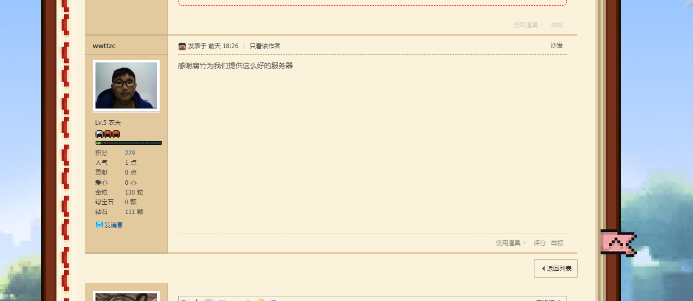 没错 璀璨猫服务器的服务器帖子下出现了回复1???