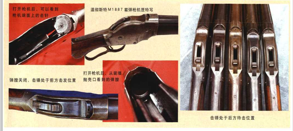 (如图所示,是为M1887的机匣部分,可以清楚地看到击锤和枪机)
