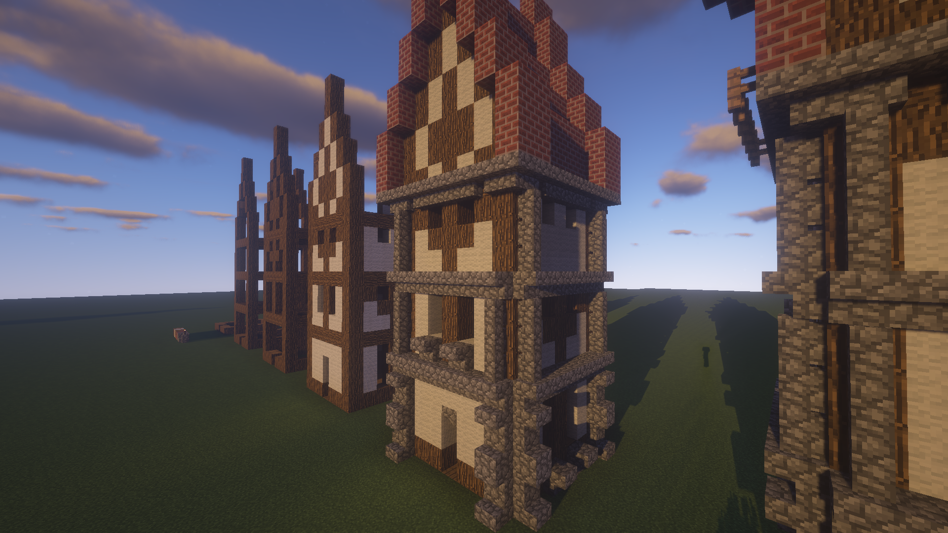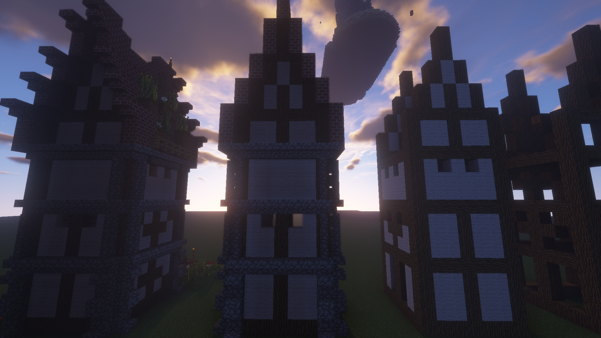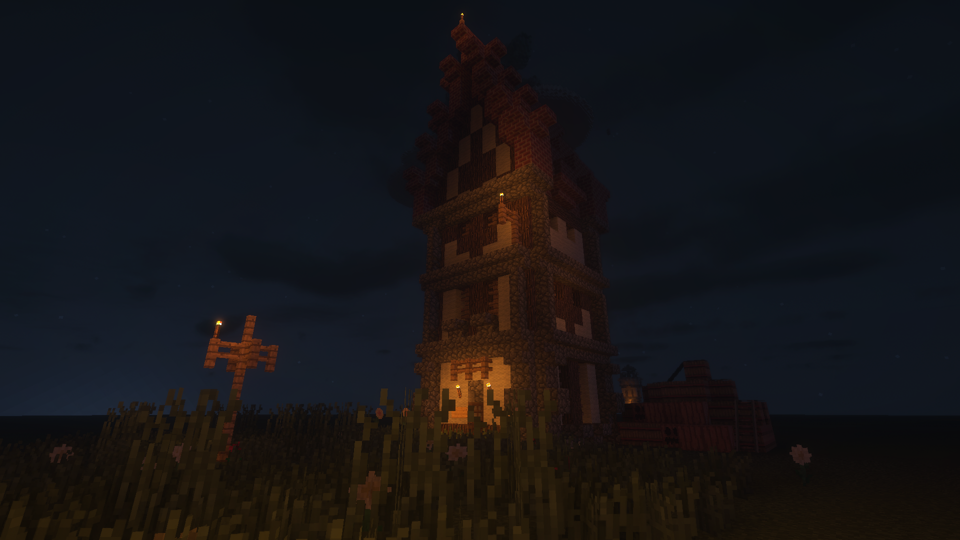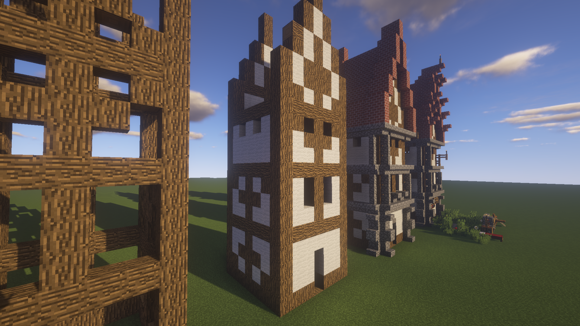 搭配圆石路和骨粉草地,屋顶小花园阳台以及稻草堆,充实建筑,使更加风格化
