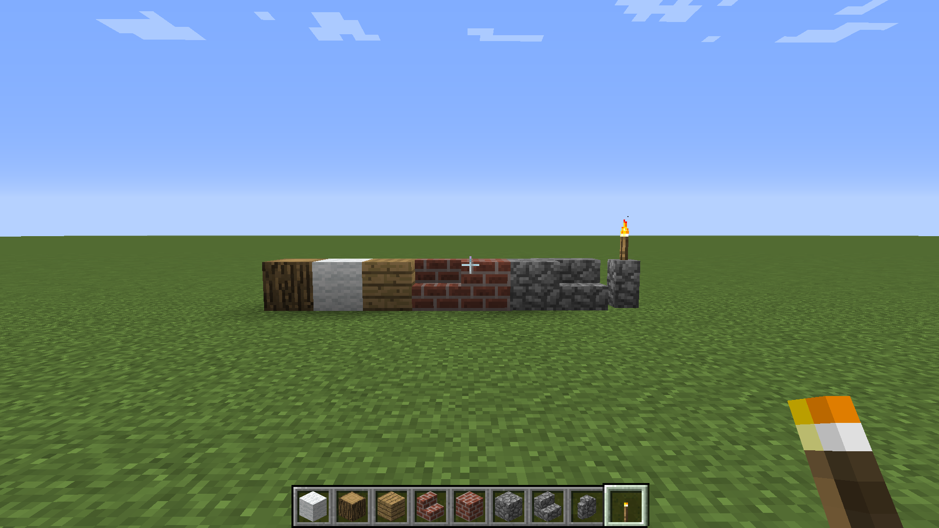 中世纪常用实体方块:橡木(各种原木)羊毛,橡木板(各种木板),砖块类,圆石类,火把