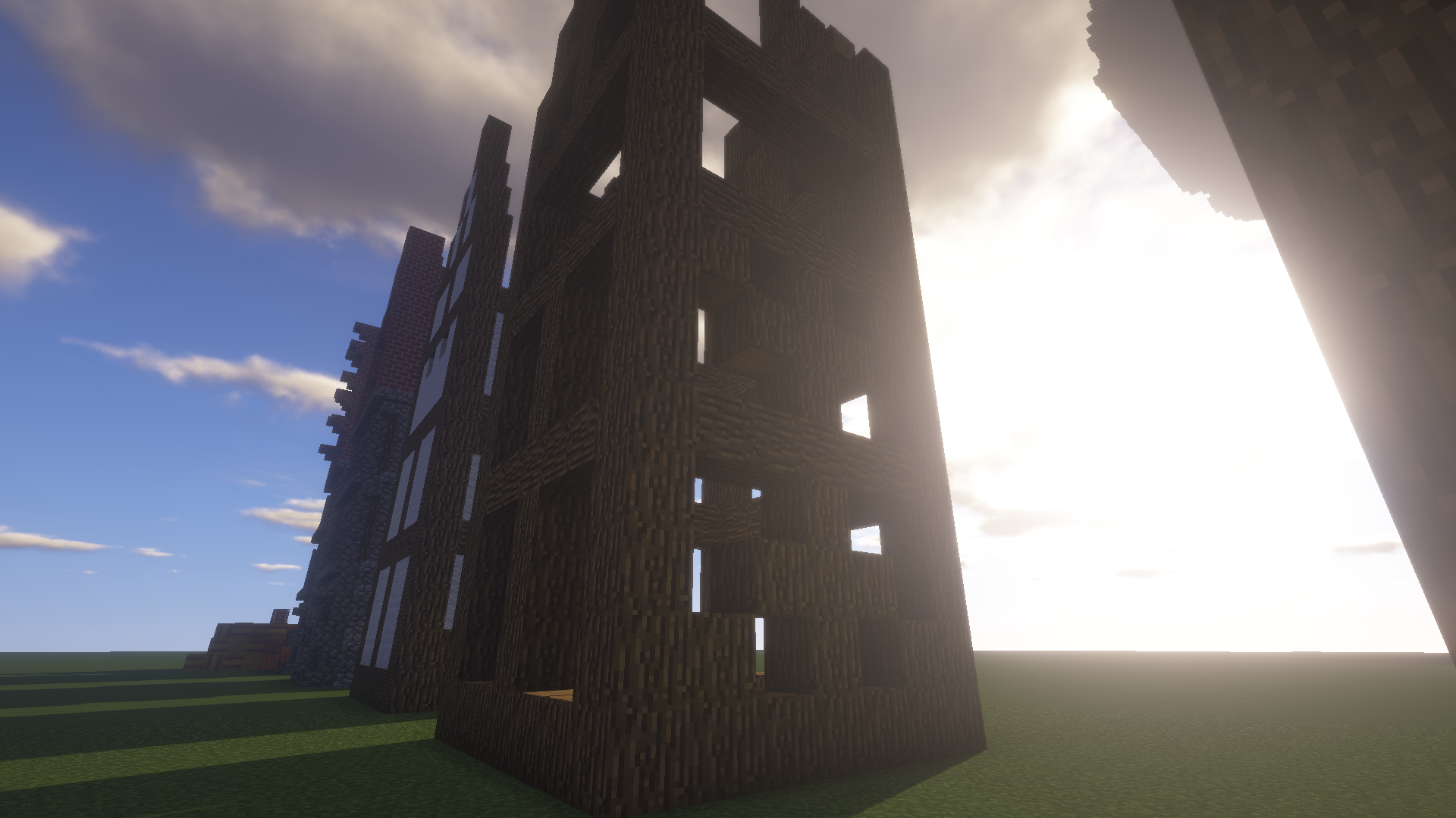 用橡木搭建一个外框,这个外框就类似于骨架,确定了建筑的基本形态,由于是中世纪风格,所以屋顶采用尖顶