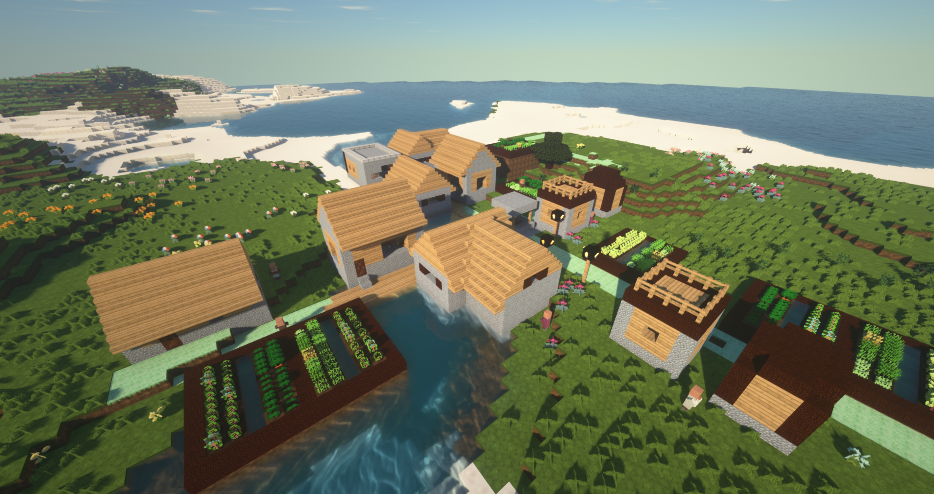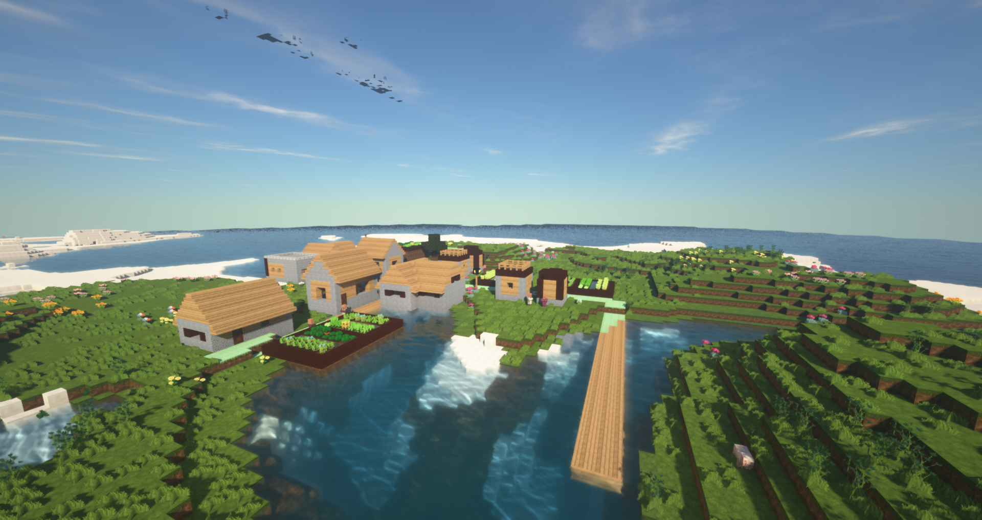 注:村庄大约1500格,和小岛相隔一片大海,考虑到初期生存困难,作者菌准备了一箱初始物资,自己寻找!