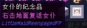 女仆的纪念品:驯服的女仆死亡后掉落,右击地面可复活当前女仆,但是处于罢工状态并且血量只有0.5颗❤。