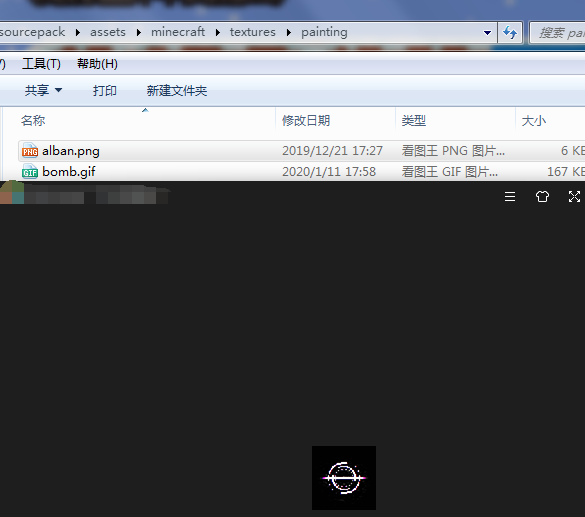 好像记得某个版本添加了能读取gif的特性,于是尝试了一下用gif替换原版的画的材质,结果失败了