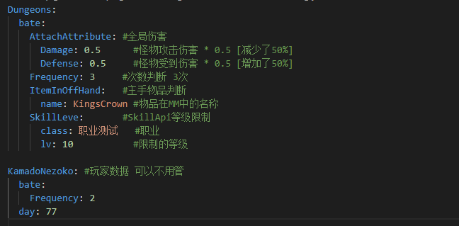 想着好像原来的DungeonsXL没有等级和次数的判定,虽然好像利用其他插件搭配也能做到同样的效果,但既然想到了,我就试着用我蹩脚的能力拼凑出了这么一个插件