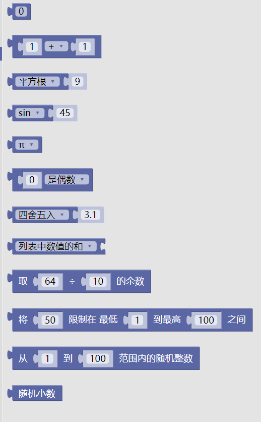 blocklynukkit提供了大部分常用的基本初等数学计算拼图块,能够完成大部分的代数运算。