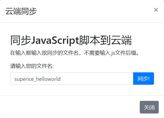 点击云端同步之后,我们选择云端同步,输入自己的插件名称(只能包含英文和数字和下划线),比如我这里写的"superice_helloworld":